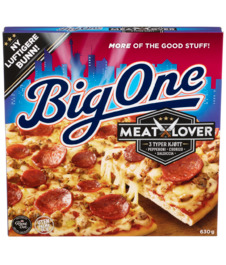 New York Grilled Steak, Take Away Meat Lover by Big One. The Masterpiece The Meat Loveraposs The Darwin Pandaaposs Pepper. Curious about how many calories are in Large Pan Pizza Meat Lover s? Frossenpizzaen fra BigOne Meatlover skal, i flge produsenten, vre en pizza for kjttelskere med mer kjtt enn noen gang.